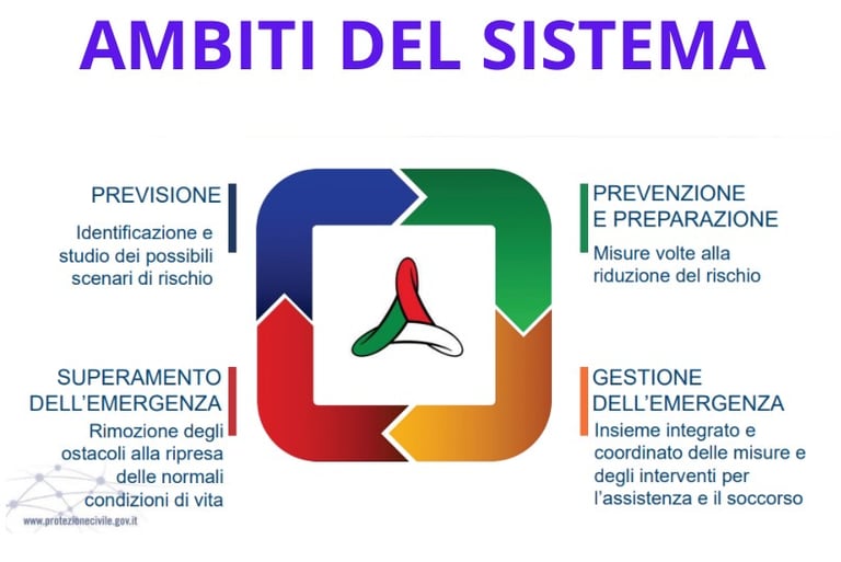 L’Italia è tra i Paesi al mondo maggiormente esposti ai rischi naturali e derivanti dalle attività dell’uomo. Ciò rende necessario un sistema di protezione civile che assicuri in ogni area la presenza di risorse umane, conoscenze, mezzi, capacità operative, organizzative e decisionali in grado di intervenire in tempi brevissimi e in modo coordinato in caso di emergenza, ma anche di operare con continuità per prevenire e, per quanto possibile, prevedere eventuali disastri. Per questo motivo in Italia la protezione civile non è un compito assegnato a una singola amministrazione ma è una funzione attribuita a un sistema integrato: il Servizio Nazionale, istituito nel 1992 con la legge n. 225. Il Servizio Nazionale – dal 2018 disciplinato dal Codice della Protezione Civile – ha come componenti tutti i livelli di governo: lo Stato, le Regioni, le Province Autonome di Trento e di Bolzano e gli Enti Locali. In coordinamento con le componenti lavorano le strutture operative: il Corpo Nazionale dei Vigili del Fuoco, struttura fondamentale, le Forze Armate, le Forze di Polizia, la Comunità scientifica, il Servizio Sanitario Nazionale, il volontariato organizzato di protezione civile, la Croce Rossa Italiana, il Corpo Nazionale del Soccorso Alpino e Speleologico, il Sistema Nazionale per la Protezione dell’Ambiente e le strutture preposte alla gestione dei servizi meteorologici a livello nazionale. Partecipano alle attività di protezione civile anche espressioni della società civile come gli ordini e i collegi professionali e le aziende private, in particolare quelle legate a settori strategici come le comunicazioni, i trasporti e le reti dei servizi essenziali. Il Servizio Nazionale opera secondo il principio di sussidiarietà a livello centrale, regionale e locale attraverso le autorità di protezione civile: il Presidente del Consiglio dei Ministri in qualità di autorità nazionale, i Presidenti delle Regioni e delle Province Autonome di Trento e di Bolzano, i Sindaci e i Sindaci metropolitani in qualità di autorità territoriali. Quando l’evento non può essere fronteggiato con i mezzi a disposizione del Comune, si mobilitano la Provincia, la Prefettura e la Regione, fino al coinvolgimento dello Stato in caso di emergenza nazionale. Questa rete di competenze trova il suo punto di raccordo nelle funzioni di indirizzo e coordinamento affidate al Presidente del Consiglio dei Ministri, che le esercita avvalendosi del Dipartimento della Protezione Civile.
